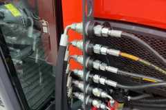 wydajność 33,1 l/min (roboczy układ hydrauliczny 18,7 l/min), maks. ciśnienie robocze 165 barów, Udźwig na końcu dolnego ramienia podnośnika: 970 kg, Tylny TUZ kat. I Standardowo wyposażony w 6 przyłączy hydraulicznych z przodu.